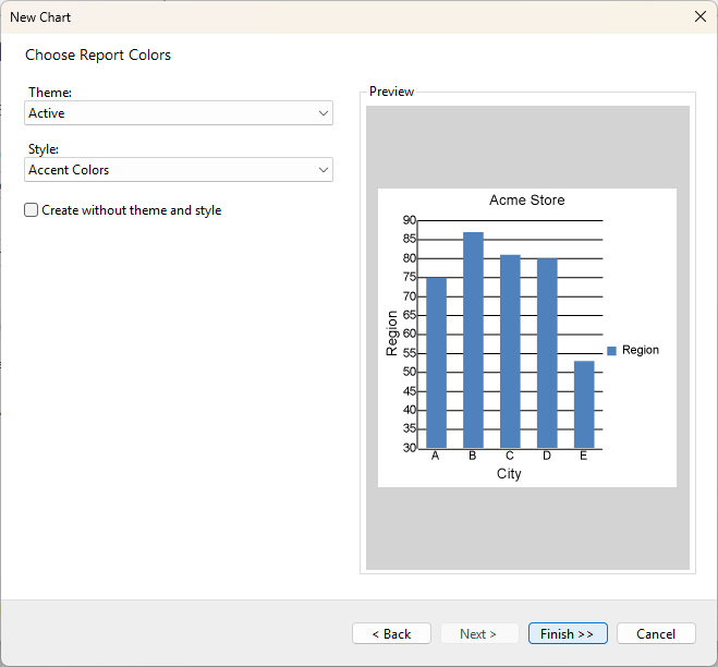 On the final screen of the Report Wizard, choose the report colors and preview the report.