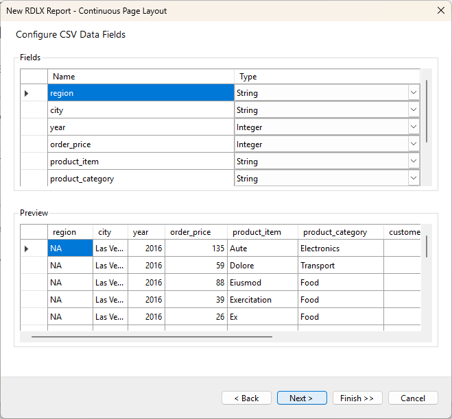 Click Next to proceed to the step of configuring CSV data fields.
