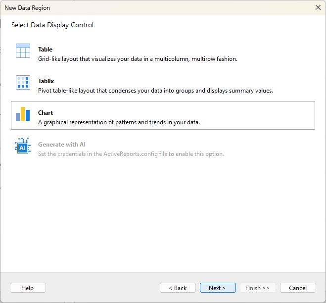 Click Next to proceed to the next step of selecting a report control.