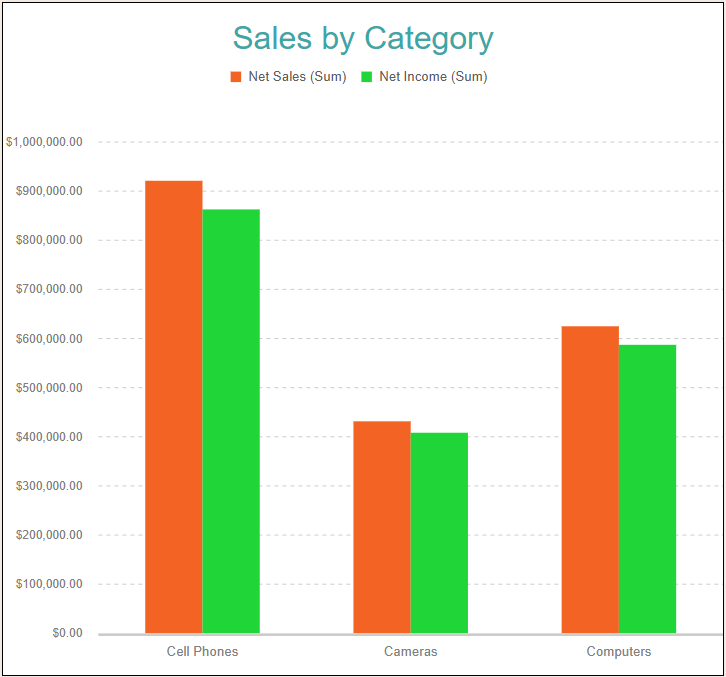 Used for category-wise comparisons, these charts work well for showing quantities like sales, inventory levels, or user counts.