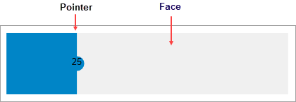 The face of the Gauge control determine the geometrical appearance of the control, while the pointer is an indicator that can be used to represent the gauge's current value. The following image showcases face and pointer of the linear gauge.