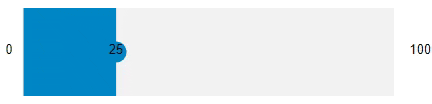 The following image showcases the minimum value set to 1 and the maximum value set to 100 for the gauge.