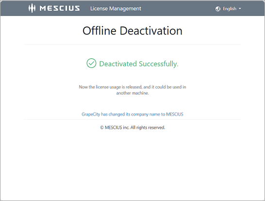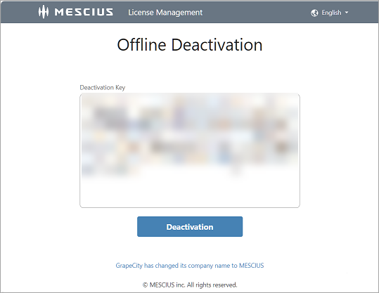 Launch the MESCIUS License Manager tool (C:\ProgramData\GrapeCity\gclm\gclm.exe) and proceed to deactivate a key as follows.