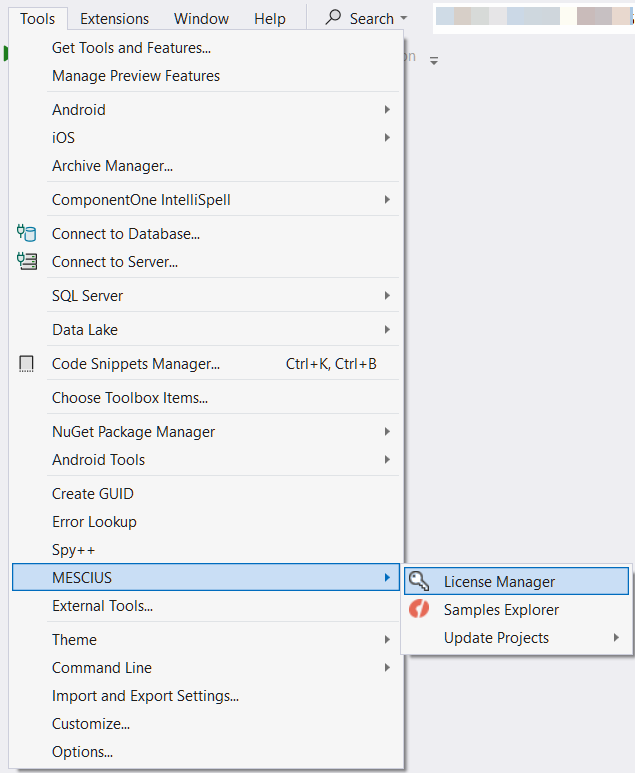 From the Tools menu, select MESCIUS > MESCIUS License Manager