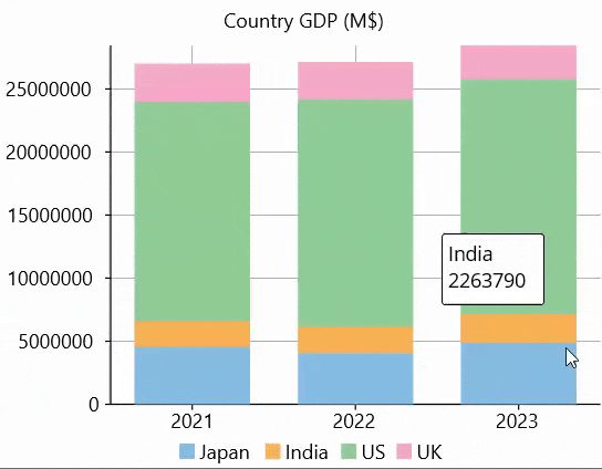 <c1:FlexChart x:Name="chart" ChartType="Column" BindingX="year" Stacking="Stacked" Header="Country GDP (M$)"