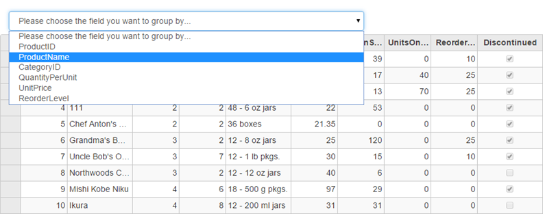 groupingFieldNameList.addEventListener('change', groupGrid);