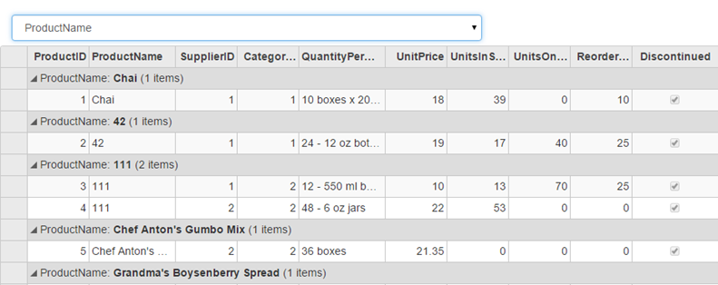 The example uses C1NWind datasource, which was configured in the application in the Quick Start. The image below shows how the FlexGrid appears after grouping is applied on it: