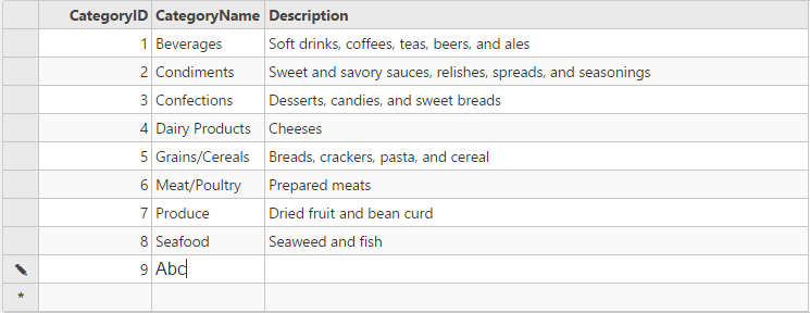 This example shows how to use Edit request of CollectionViewHelper, which allows adding records to source database in data-bound controls, such as FlexGrid. Here, the GridCreateCategory action of the controller is assigned to the Create property of FlexGrid's ItemSource.