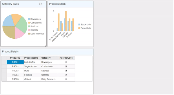 The tool-icon can be used to drag and drop a tile by hovering the mouse over it and dragging the child container to another position. On clicking, the tool-icon opens a context menu which by default, displays the options for hiding a tile or show all tiles.