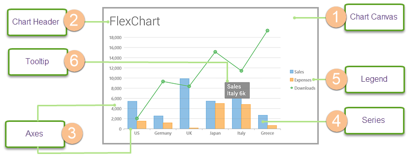 Chart Canvas | Area on which all chart elements including the series, axes title and legend are placed. |