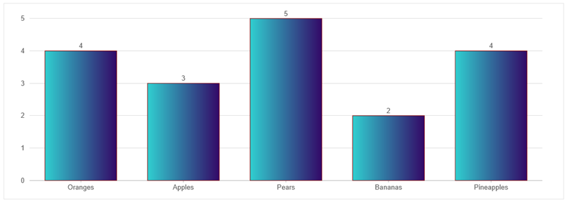 The following code example demonstrates how to add gradient colors in FlexChart. This example uses the Fruit.cs model created in the FlexChart: Quick Start section.
