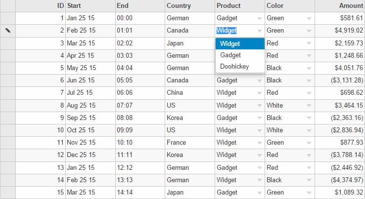 If you do not assign DataMap to Product and Color columns in the grid, these columns would display corresponding product ids and Hexadecimal color codes from the datasource.