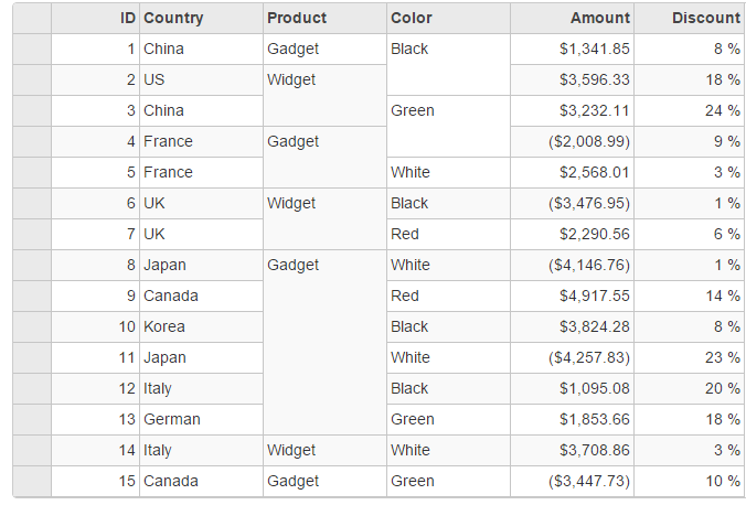 Once you have set the AllowMerging property to one of these possible values, the FlexGrid automatically merges cells, grouping the data visually.