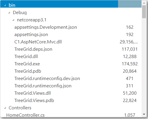 The example below uses a sample folder structure of ASP.NET MVC Edition project. You can display the tree view structure of any folder by providing its path in the ChildItemsPath property.