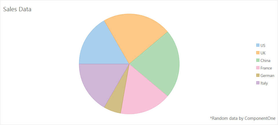 <c1-flex-pie binding-name="Country" binding="Sales" header="Sales Data" footer="*Random data by ComponentOne">