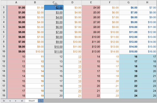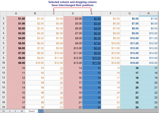FlexSheet provides in-built support for drag-and-drop editing of its rows and columns. You can easily select a row or column with mouse, to drag and move its contents to a different row or column. This not only copies and moves the contents of the specific rows and columns but also their cell style.