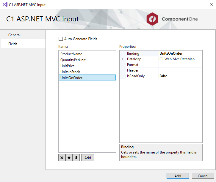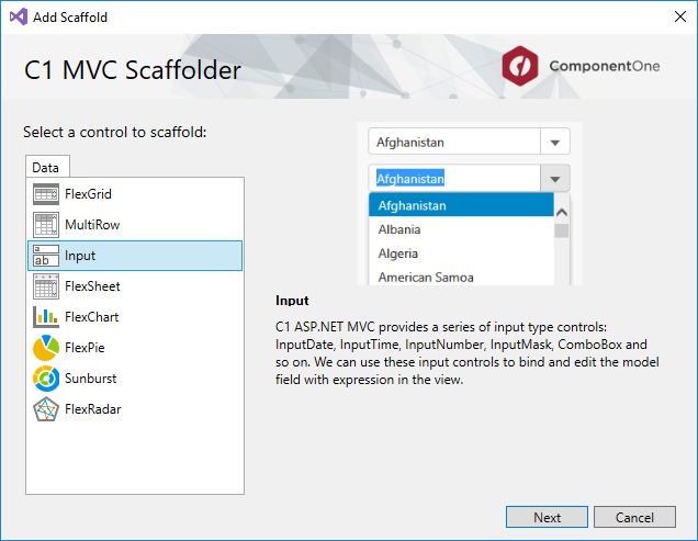 The steps to scaffold ComponentOne Input control for ASP.NET MVC are as follows: