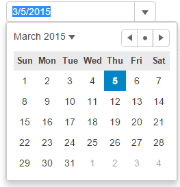 The InputDate control lets a user type in dates using any of the format supported by the Globalize class, and also pick dates from a drop-down box that shows a calendar control. To restrict the range of values a user can enter, you can use Min and Max properties. The InputDate control also allows you to change individual date components (day, month and year) independently by pressing up or down keys on the keyboard or using the mouse wheel.