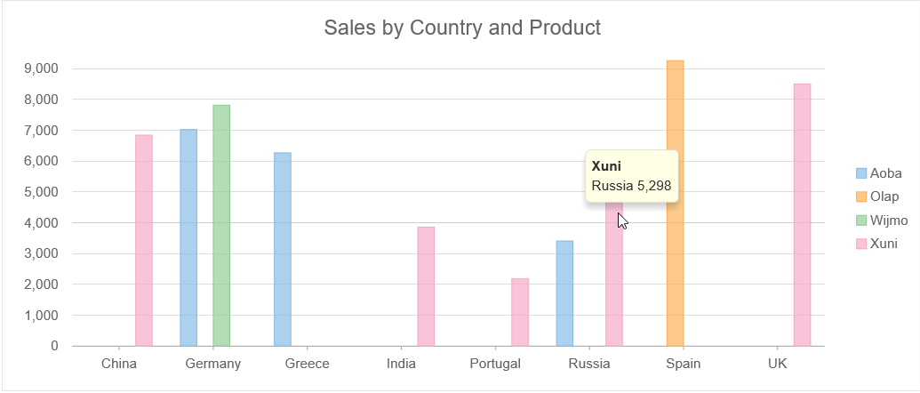 You can also export these charts to PNG and JPEG file formats, and customize the chart styles and interactivity according to your requirements. For more information about PivotChart, see QuickStart:Add Data to OLAP topic.