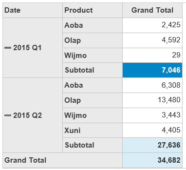 - From the Format drop-down list, select Year Quarter (yyyy "Q"q) option to group the data in the PivotGrid according to quarter.