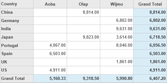 This topic helps you to understand, how to access and update field properties in an OLAP control at client side. The following image shows how OLAP control appears after updating field properties at runtime using the JavaScript code.