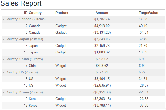 The following image shows a FlexGrid having an unbound column TargetValue. This column displays the values obtained after dividing the values in Amount column by hundred.