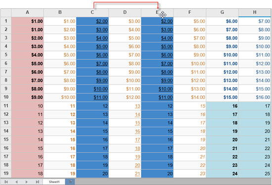 FlexSheet provides in-built support for drag-and-drop editing of its rows and columns. You can easily select a row or column with mouse, to drag and move its contents to a different row or column. This not only copies and moves the contents of the specific rows and columns but also their cell style.