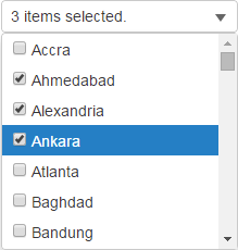 The control has a fully customizable header which, by default, displays upto two items selected from the list. If more than two items are selected from the list, then the header displays the count of selected items. However, you can control this default behavior to- adjust the maximum number of selected items to display in header (MaxHeaderItems), customize the message to be displayed when no items are selected, and set the format string to show the item count (HeaderFormatter).
