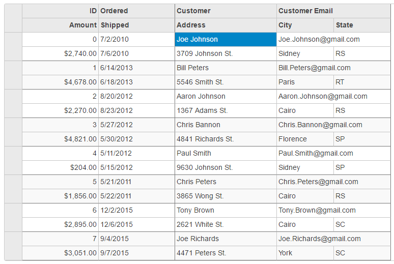 The MultiRow control provides a powerful and flexible way of using multiple rows to represent each data item in tabular format. MultiRow control allows the users to view and edit data in a tabular form, just like any other conventional grids. But, MultiRow is different from these grids in a way that it allows you to bind each data item to multiple rows, creating form-like interfaces that can display a large number of columns with minimal horizontal scrolling.