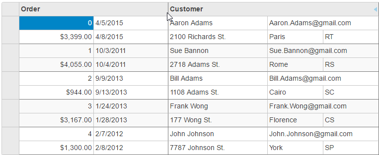 The following image shows the MultiRow control displaying CollapsedHeaders. This example uses the sample created in the Quick Start topic.