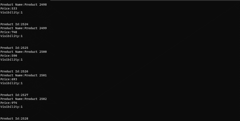 Fetch the data using C1MagentoConnection class. The connection string using corresponding attributes is passed as an argument. For more information on creating connections, see Creating Connection. C1MagentoConnection implements the ADO.NET DbConnection, similar to standard ADO.NET connection object that retrieves a single result set of all the data that matches a query. Once the connection is established, it retrieves the data from the source as shown in the following code example.