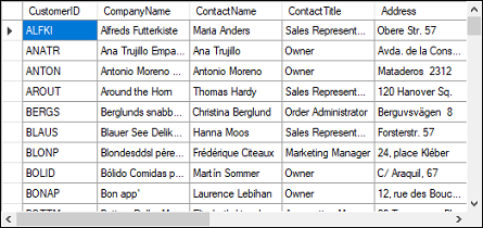 The above steps add a dataset and bind the DataGridView control to the selected table of the data source, like in the following screenshot: