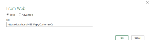In the From Web prompt window that appears, paste the API URL (The URL generated on executing the Salesforce WebAPI project).