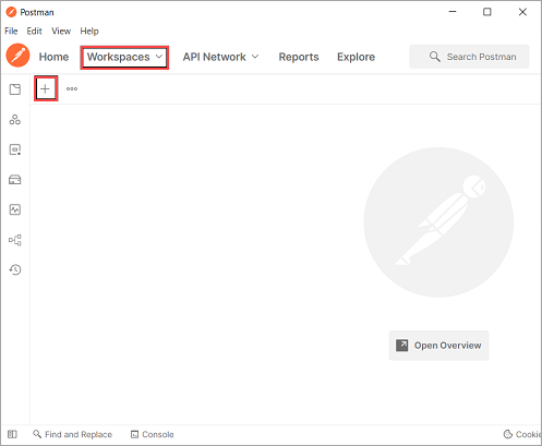 Click on the "+" icon available towards the top left of the workspace view to create a new request.