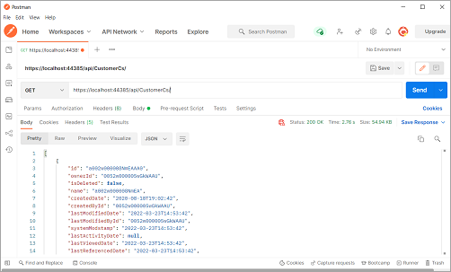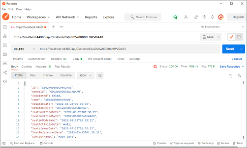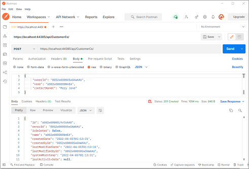 Next, set the request URI to https://localhost:<port>/api/CustomerCs/<id>,