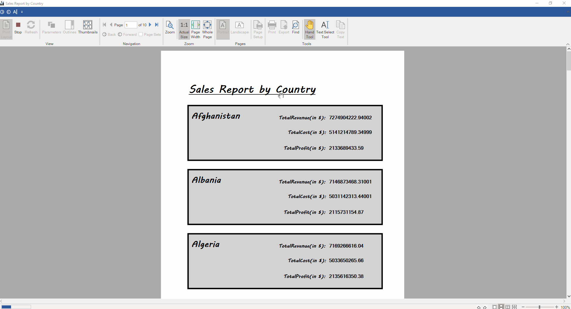 To understand more on the functionality, the following steps provide guidance on how you can create a report to display the sales data per country using C1DataEngine.