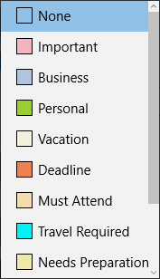 The Show time as... and Label options allow you to further customize your calendar. With twelve options, you can label your appointments so that you can see what's going to happen at a glance. Marking your status with one of four status markers allows others to see your availability.