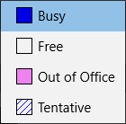 The Label determines the appointment's background color with the Status marker appearing at the left of the appointment name. You can see four of the label colors and all of the status colors in the following image: