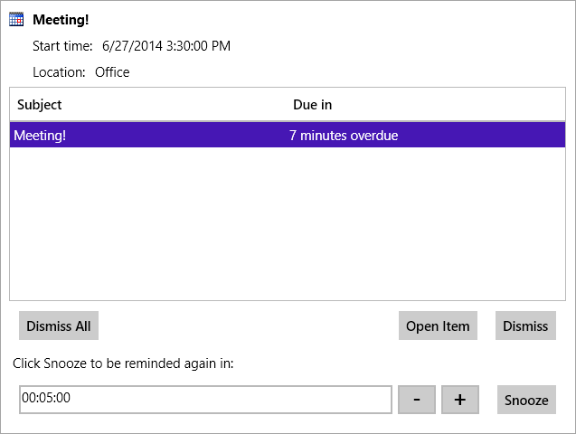By setting the ShowReminderDialog property to true, you can enable the built-in reminder dialog. When the reminder is fired, the default reminder will appear.