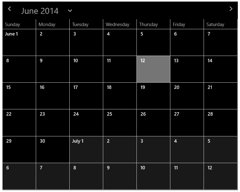 The C1Scheduler control allows you to choose between four different views: Month, Week, Work Week, and Day. Changing the initial calendar view is simple, and requires you to set just one property: ViewType. By default, the control will appear in Month view.