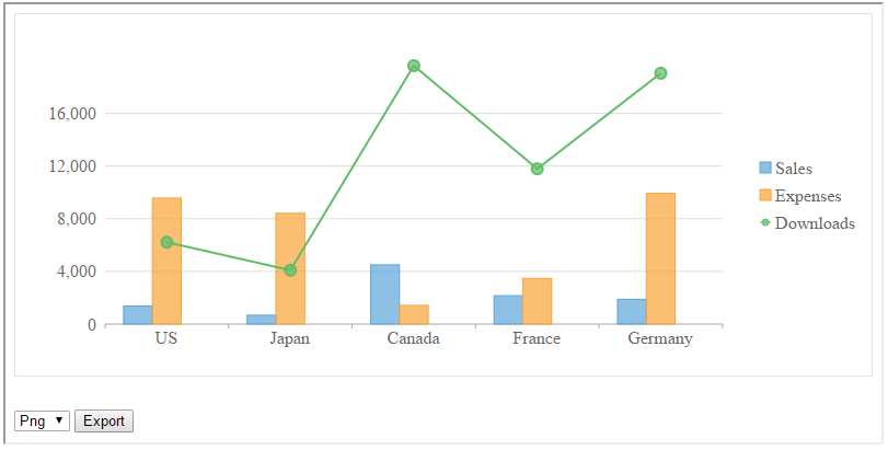 Add the following code to Views|FlexChart|Index.cshtml to export the FlexChart control to image.