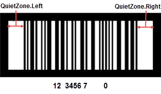 QuietZone: Lets you specify the quiet zone(s) in a barcode. A quiet zone is an area of blank space on either side of a barcode that tells the scanner where the symbology starts and stops. The options available are as follows:
