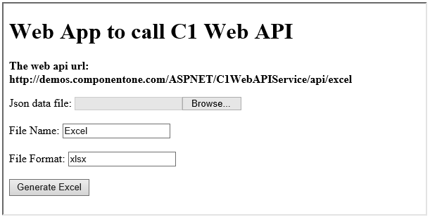 This section demonstrates how to call the Web API service through a client application and generate excel from JSON data file, posted from client.