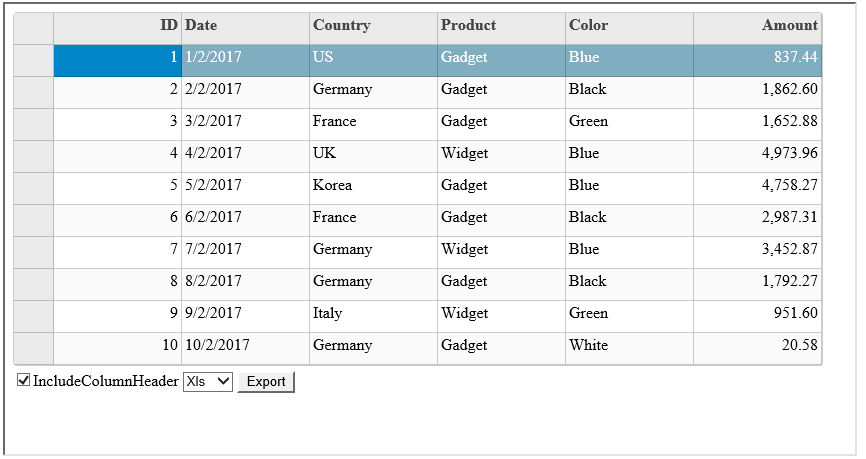 Explore detailed demo samples of export service for MVC and Wijmo5 FlexGrid control in: