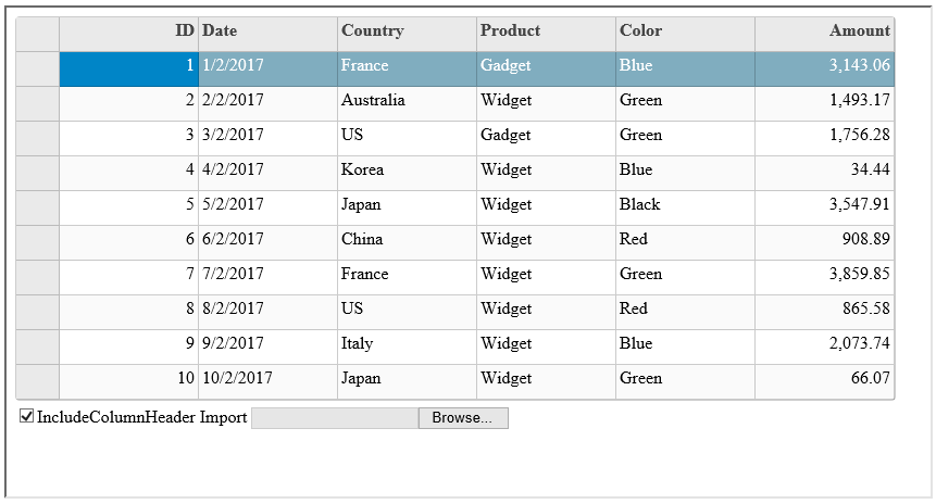 Explore detailed demo samples of import service for MVC and Wijmo5 FlexGrid control in: