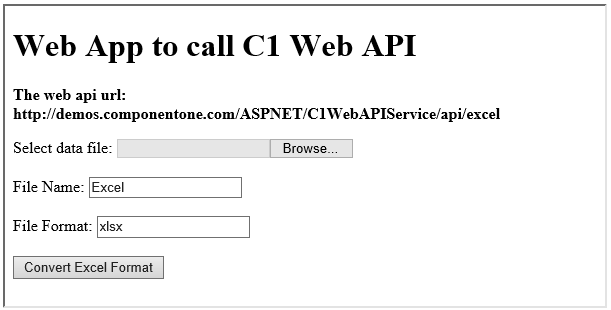 This section demonstrates how to call the Web API service through a client application and convert between excel file formats, posted from client.