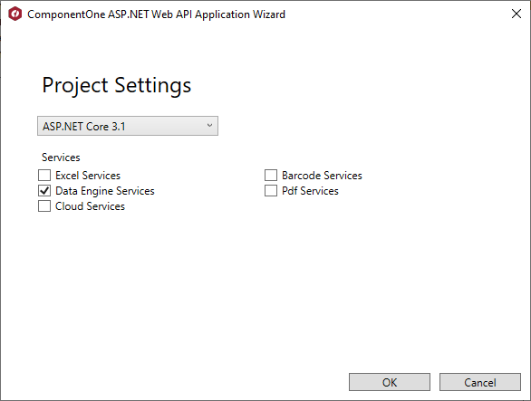 In the ComponentOne ASP.NET Web API Application Wizard, select the ASP.NET Core Framework version 3.0 and Web API Services according to your project requirements.