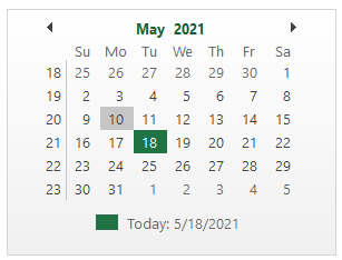 CalendarView for WinForms is a control that provides features to help you navigate the calendar UI and select days, months, and years. In addition, the CalendarView control supports rich API to set formatting and orientation. CalendarView lets you display multiple months, bolded dates, annually-bolded dates, and disabled dates, customize first day of the week etc.