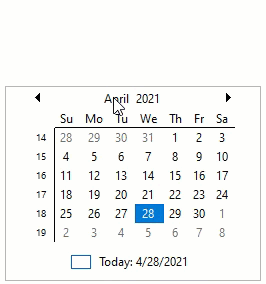 CalendarView also provides users with Popup month and year selectors, as shown in the GIF below: