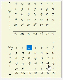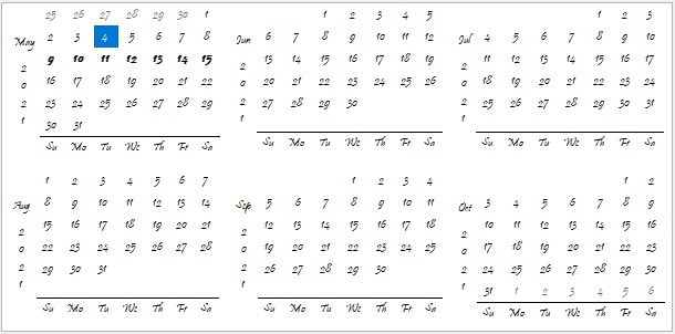 CalendarDimensions | Sets a value that indicates how many months will be shown. |